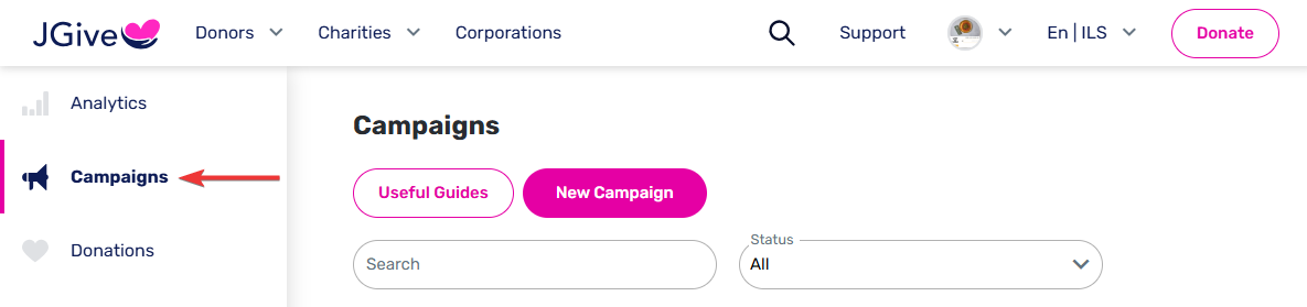 1. Click on 'Campaigns' in the menu on the left side of the screen