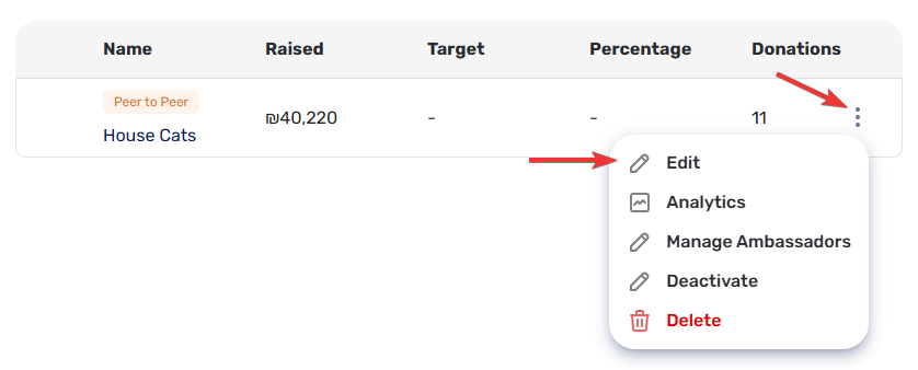 2. Find the campaign you wish to modify, clickand then click on 'Edit'